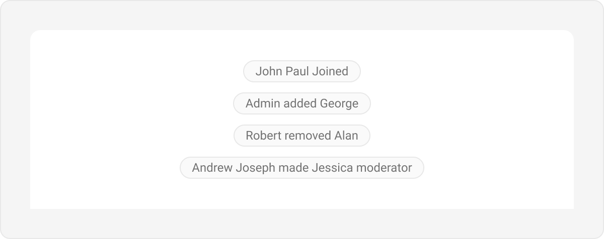 Meet call bubbles display call-related actions and statuses in the chat interface. Default