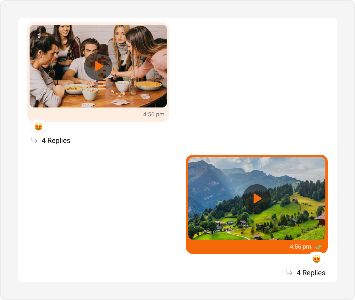 Video bubbles display video messages or clips in a chat. Default Customization