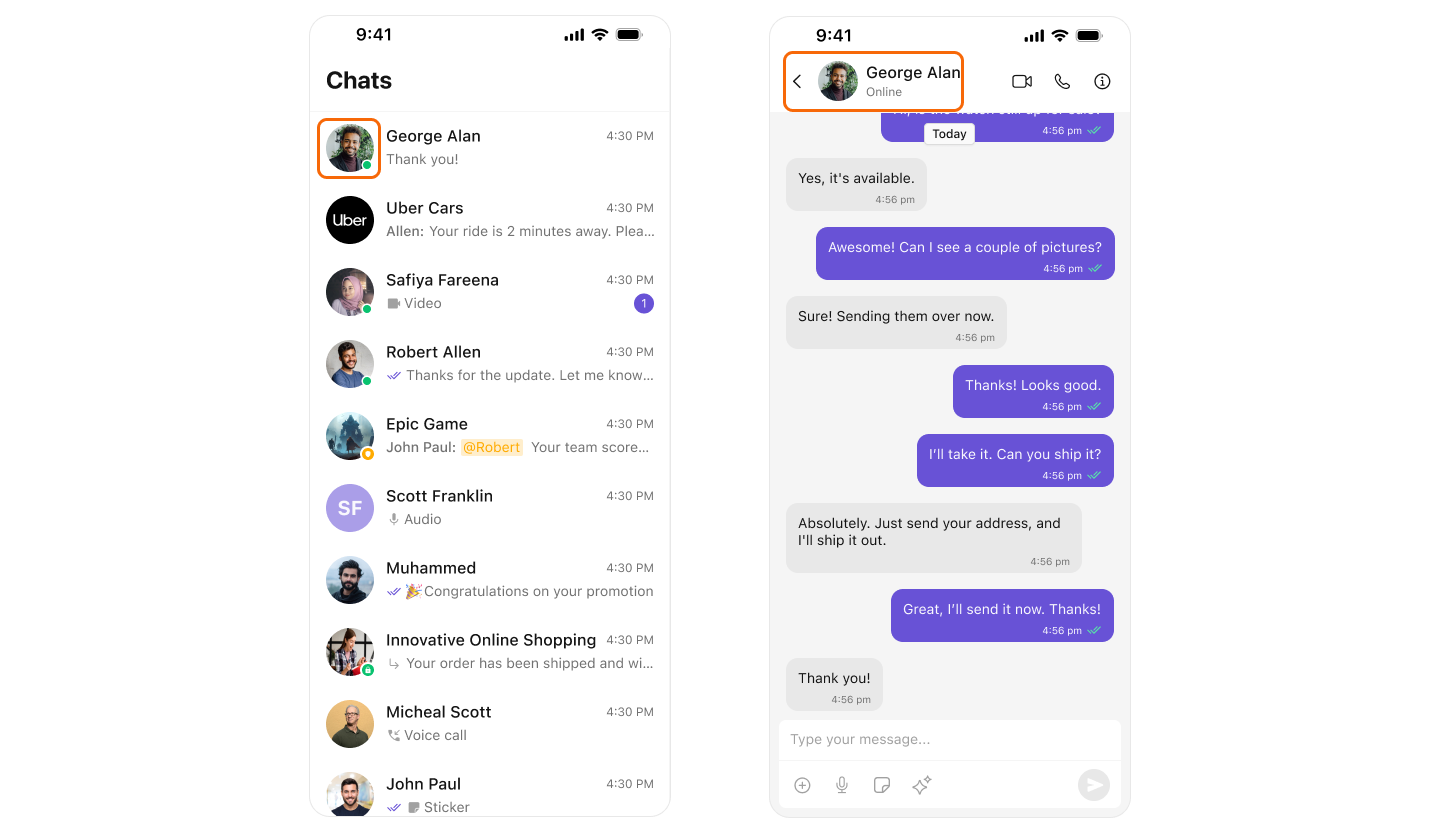 | Typing Indicators | MessageHeader | ✅ |