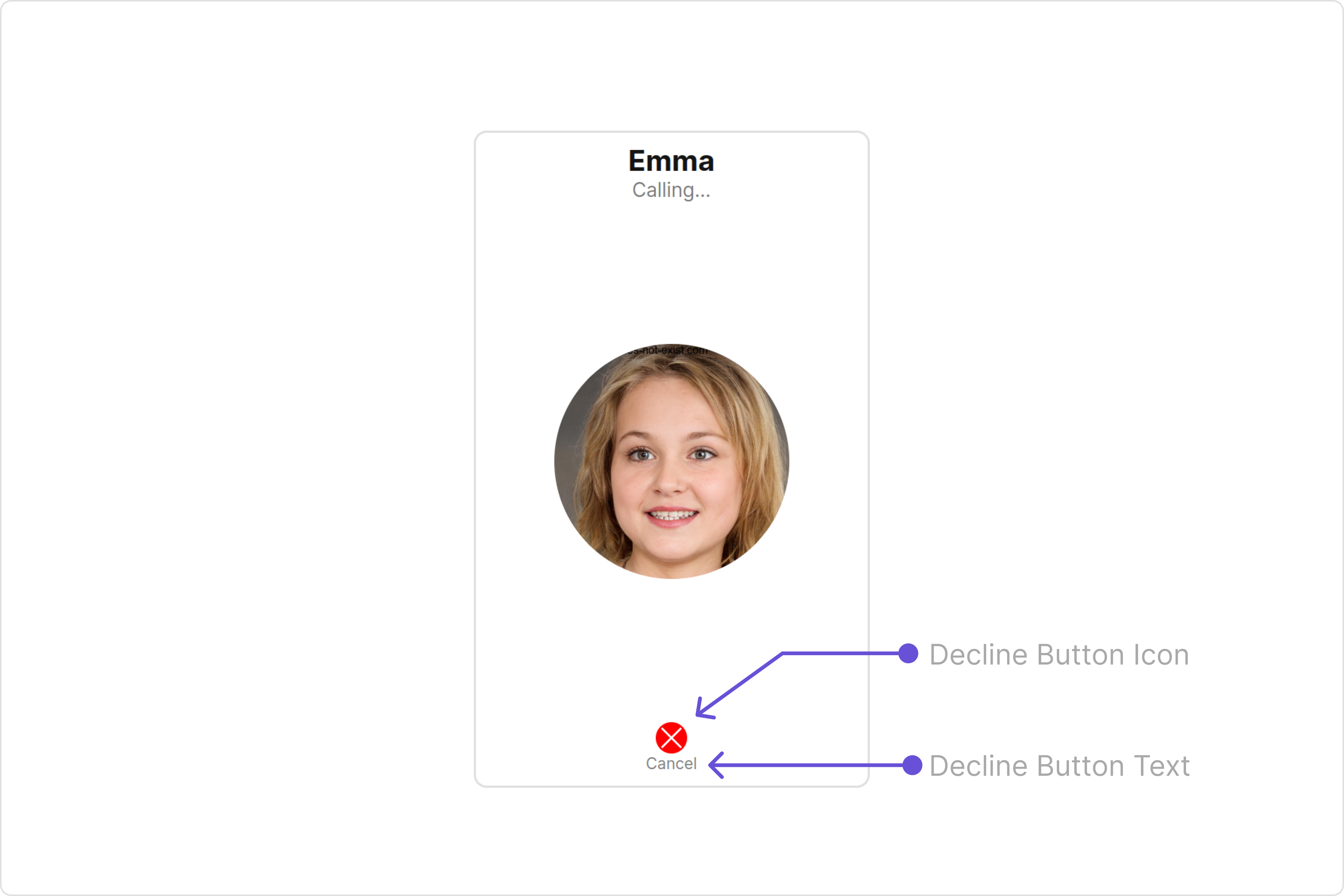 | declineButtonIconURL | Used to set custom decline button icon URL | declineButtonIconURL='Your Custom Decline Button Icon URL' |
